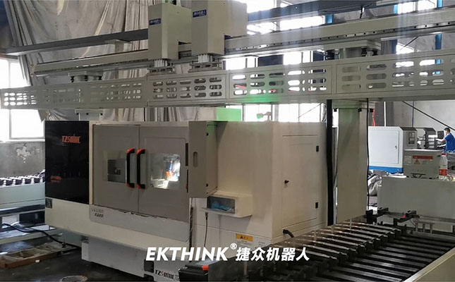 數(shù)控車床一拖二機械手連線自動上下料,視頻來自捷眾機器人。桁架機械手一般安裝在機床上方,軌跡單一,占用空間小,能夠?qū)崿F(xiàn)一對一、一對二或多機并聯(lián)。13